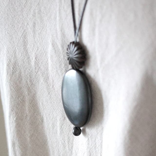 このペンダントは、黒檀を使用した楕円形の部分と、小花のデザインが組み合わさった美しい逸品です。