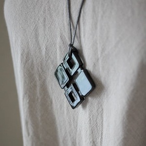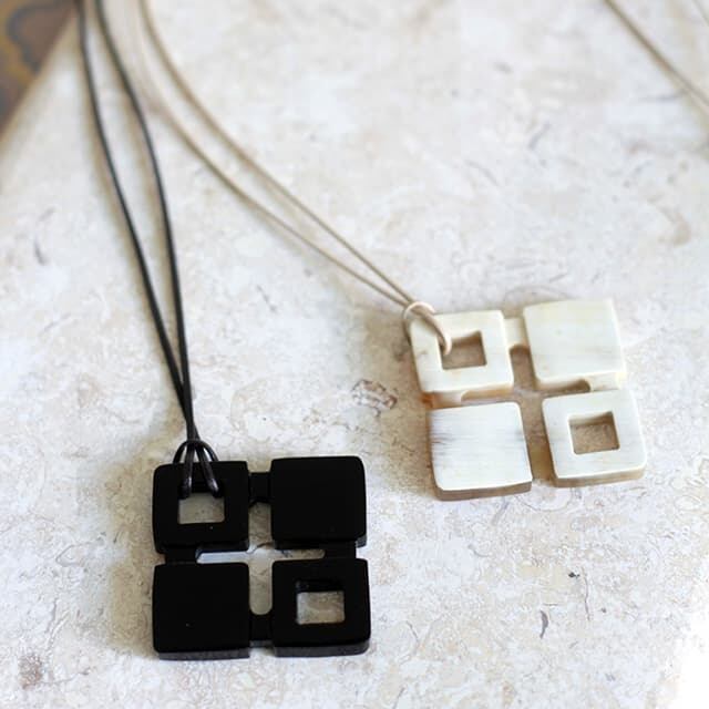 黒い水牛の角を使用した四角いパーツを4つ繋げた洗練されたデザインのペンダントです。