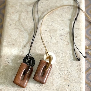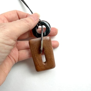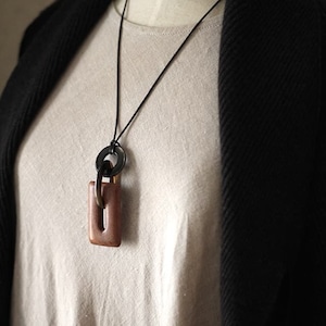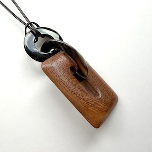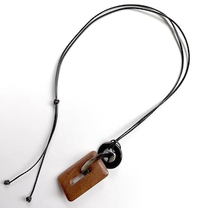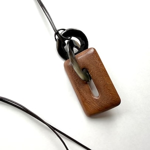 Connecting a rectangular rosewood piece with a hoop-shaped black buffalo horn creates a lovely pendant. The gentle swaying motion is also charming.