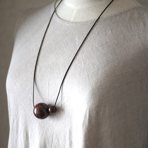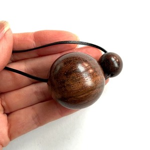 大小の丸いボール形の木を一つづつ並べて繋いだペンダントです。