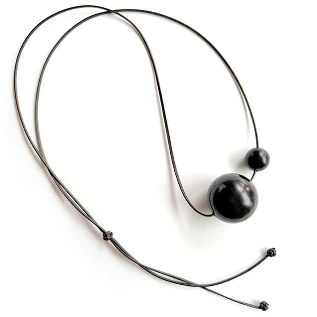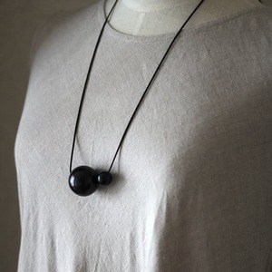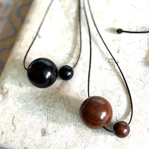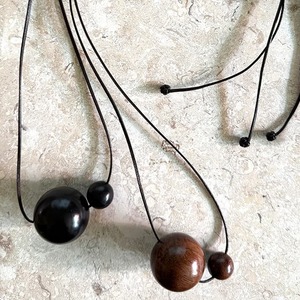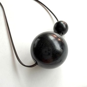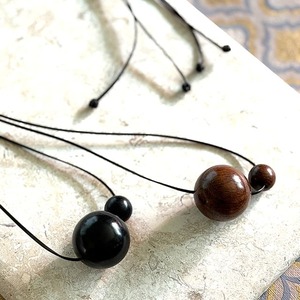 大小の丸いボール形の木を一つづつ並べて繋いだペンダントです。